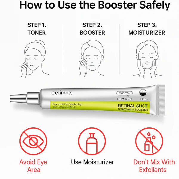Apply 1 or 2 drops and gently tap them onto the clean, dry face at night. Focus on areas with wrinkles or enlarged pores, or extend it over the entire face once adapted.